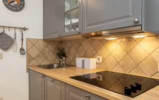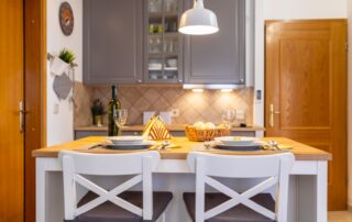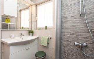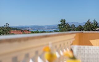 The apartment also has a balcony with sitting furniture and a beautiful sea view. Outside you will find a shared terrace with sun loungers, barbecue and of course a beautiful swimming pool.