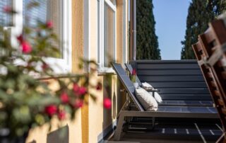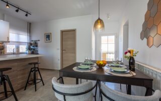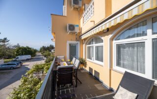 The apartment also has a nice balcony. Accommodation is also suitable for families with children, because near the house there is a children’s playground and a table tennis table. There is also a shared pool with a terrace and barbecue facilities.