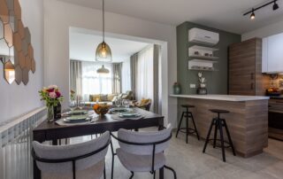 bedrooms, kitchen with dining room, living room, 2 bathrooms / toilets and balconies
