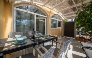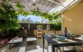 The apartment also has its own terrace with seating and deck chairs. There is also a shared terrace offering a beautiful pool, sun loungers and barbecue facilities. Parking is opposite the house. There is also a children’s playground and table tennis table.